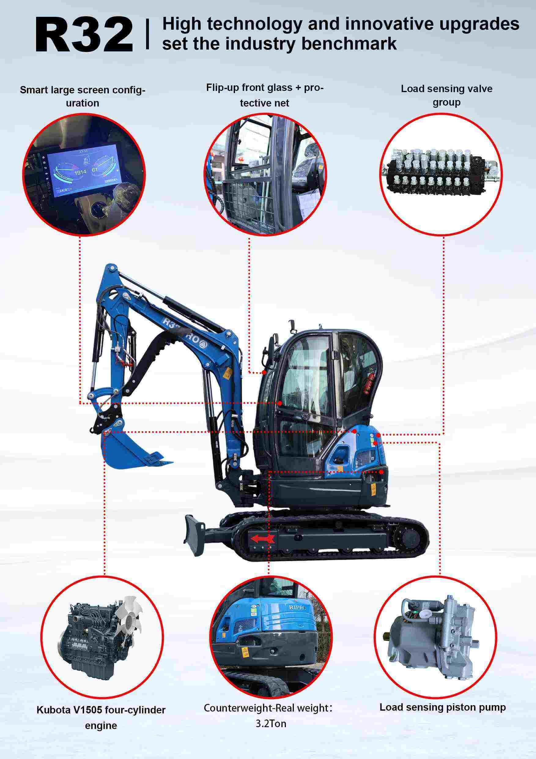 The R32 small excavator not only continues RIPPA's tradition of high quality and efficiency, but also has achieved a number of upgrades: