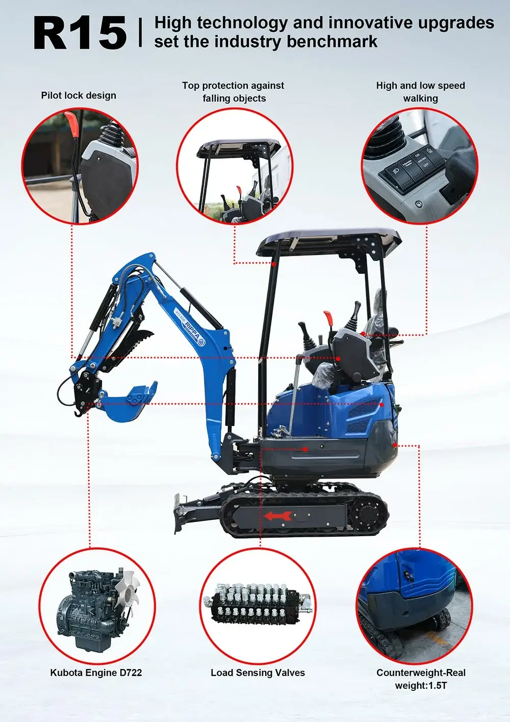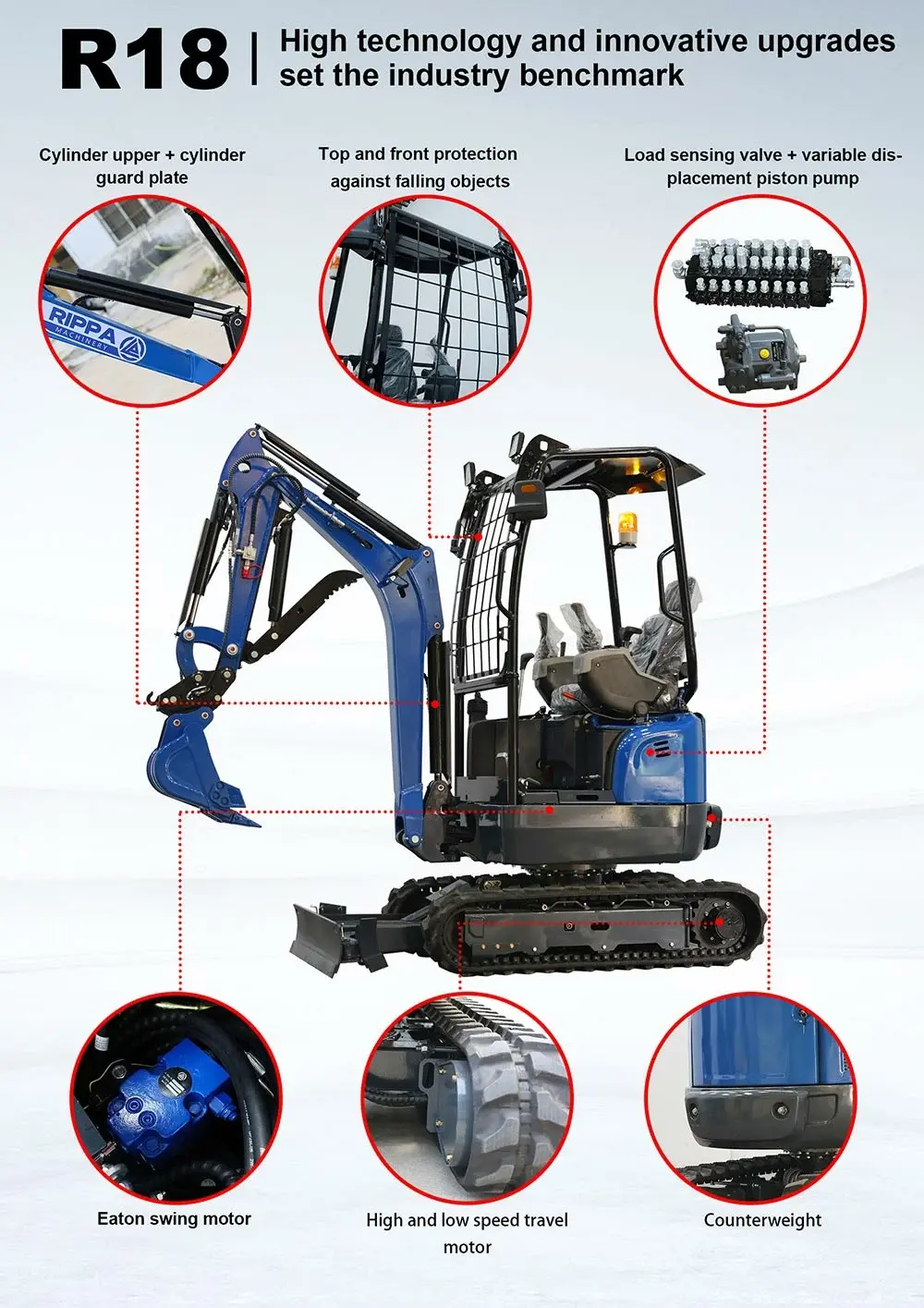 As a RIPPA brand, we are well aware of the core position of authorized agents in the construction machinery market. From the perspective of agents, this article deeply analyzes the high-tech configuration and innovative upgrades of RIPPA's latest six mini excavators R10, R13, R15, R18, R22, and R32, helping you accurately grasp the product selling points, increase resale profits, and enhance customer interaction.