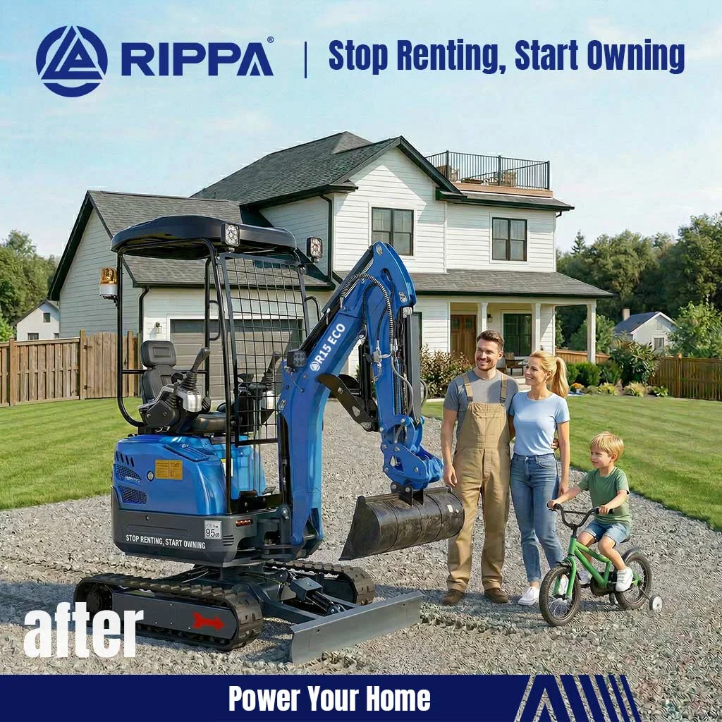 The RIPPA R15 is a 1.5-ton class mini excavator positioned in RIPPA’s lineup as the “Universal Homeowner Модель.” It fills the critical gap between lightweight yard machines (under 1 ton) and heavy-duty project machines (over 1.8 tons), designed specifically for homeowners who need more power but still want compact size and ease of operation.