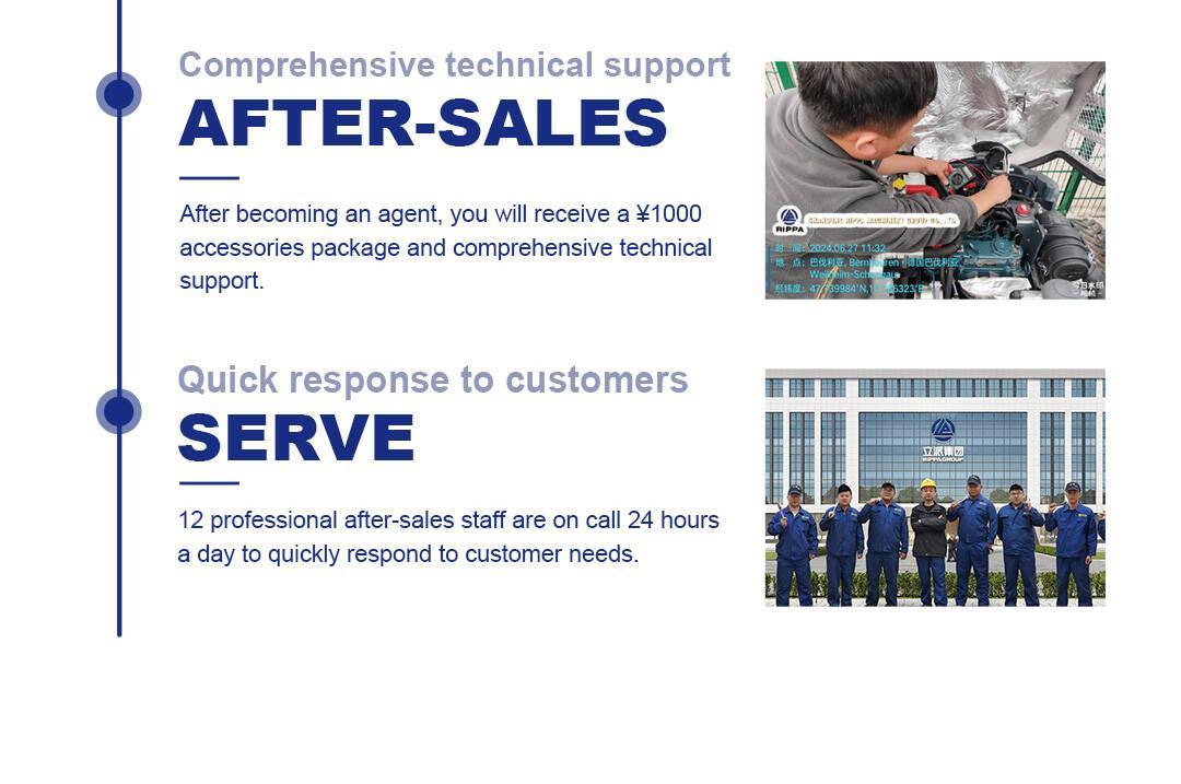 Rippa provides comprehensive after-sales service and technical support to all agents and end customers. After the customer places an order, they can get matching accessories packages and thoughtful technical services. Overseas Distribution Center locations are equipped with professional after-sales engineers, who are on call 24/7 to ensure that customer needs are responded to in the first time and help engineering equipment operate efficiently and worry-free.